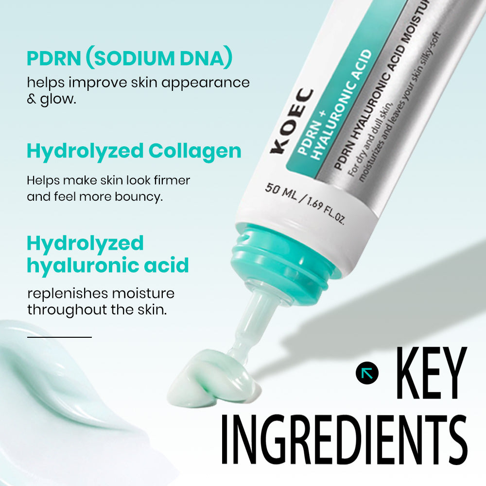 Formulated with PDRN (sourced from salmon DNA), our facial moisturizer features low-molecular PDRN for 100% superior absorption. This innovative ingredient penetrates deep to revitalize skin from within, restoring a healthy, luminous glow that enhances your natural complexion and locks in nourishment for all-day radiance.