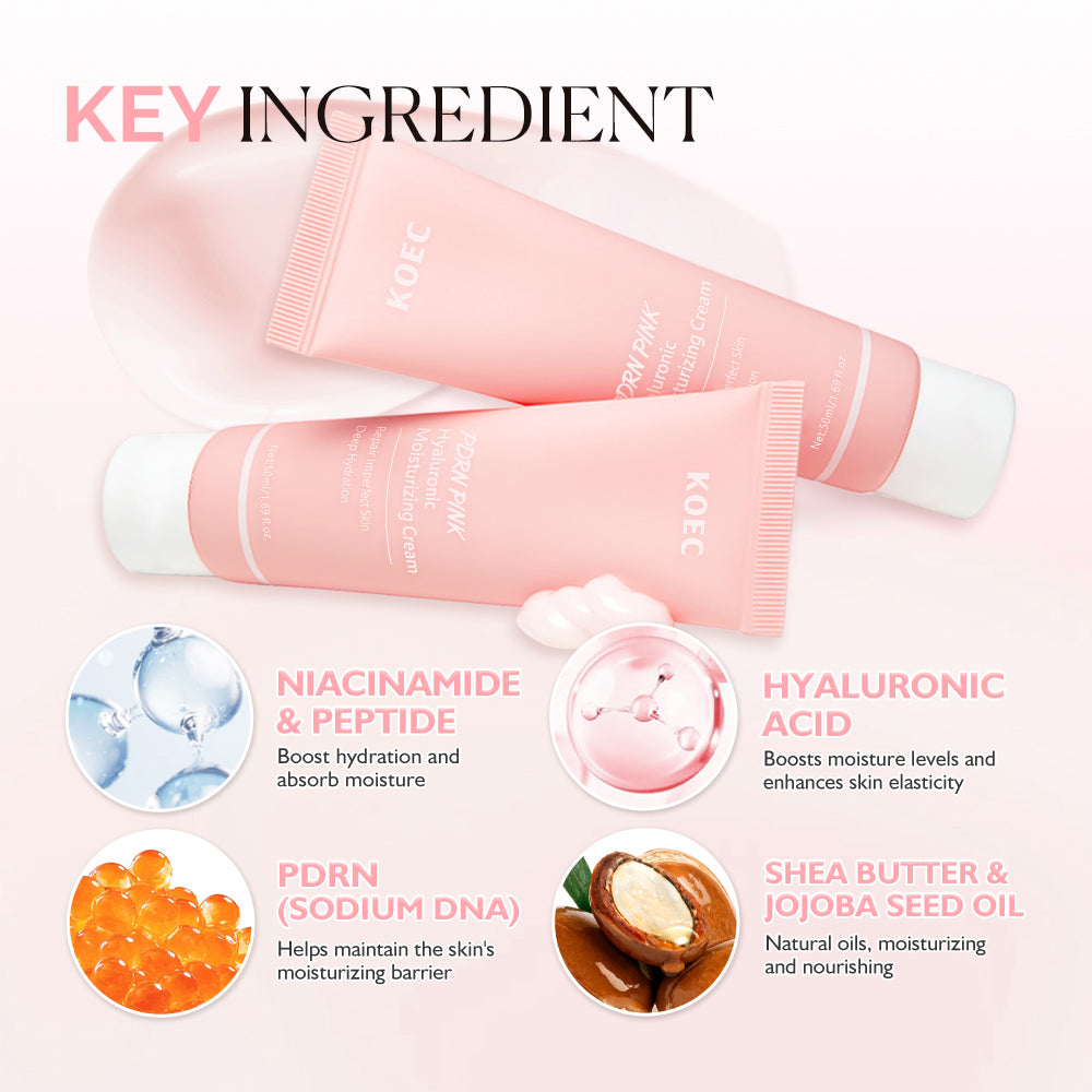 Transform your skincare routine with our advanced PDRN PINK Hyaluronic Moisturizing Cream, a luxurious formula designed to deliver intense hydration and restore your skin's natural radiance.