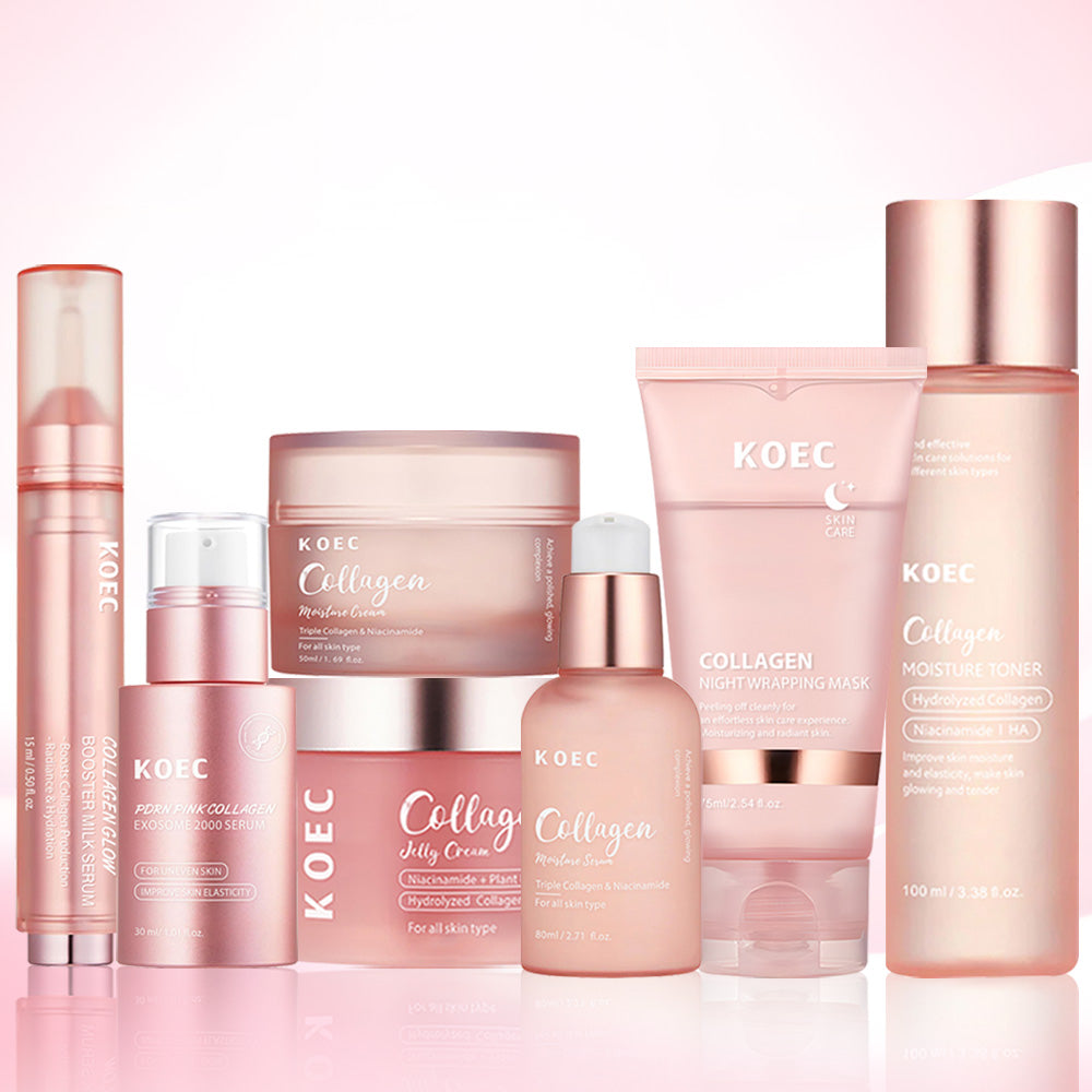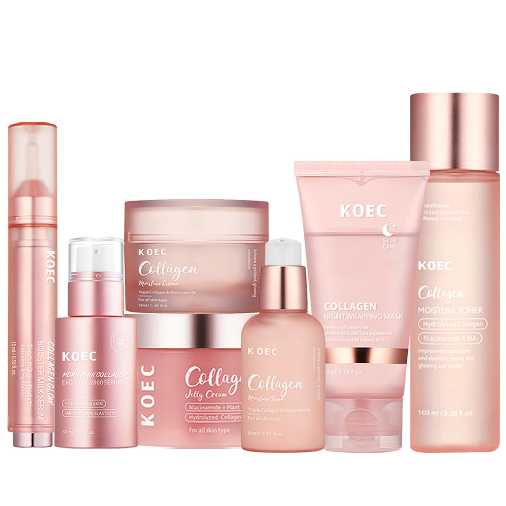 Elevate your collagen routine with the KOEC Deep Collagen + Glow Booster Set—now upgraded with the COLLAGEN GLOW BOOSTER SERUM for added radiance, plus 7 core products to boost plumpness, firmness, and glow.