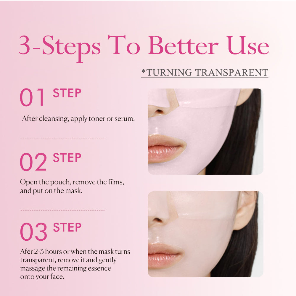 Cleanse face thoroughly. Apply mask and leave on for 20–30 minutes. Remove and gently pat remaining essence into skin. Use 2–3 times per week for best results.