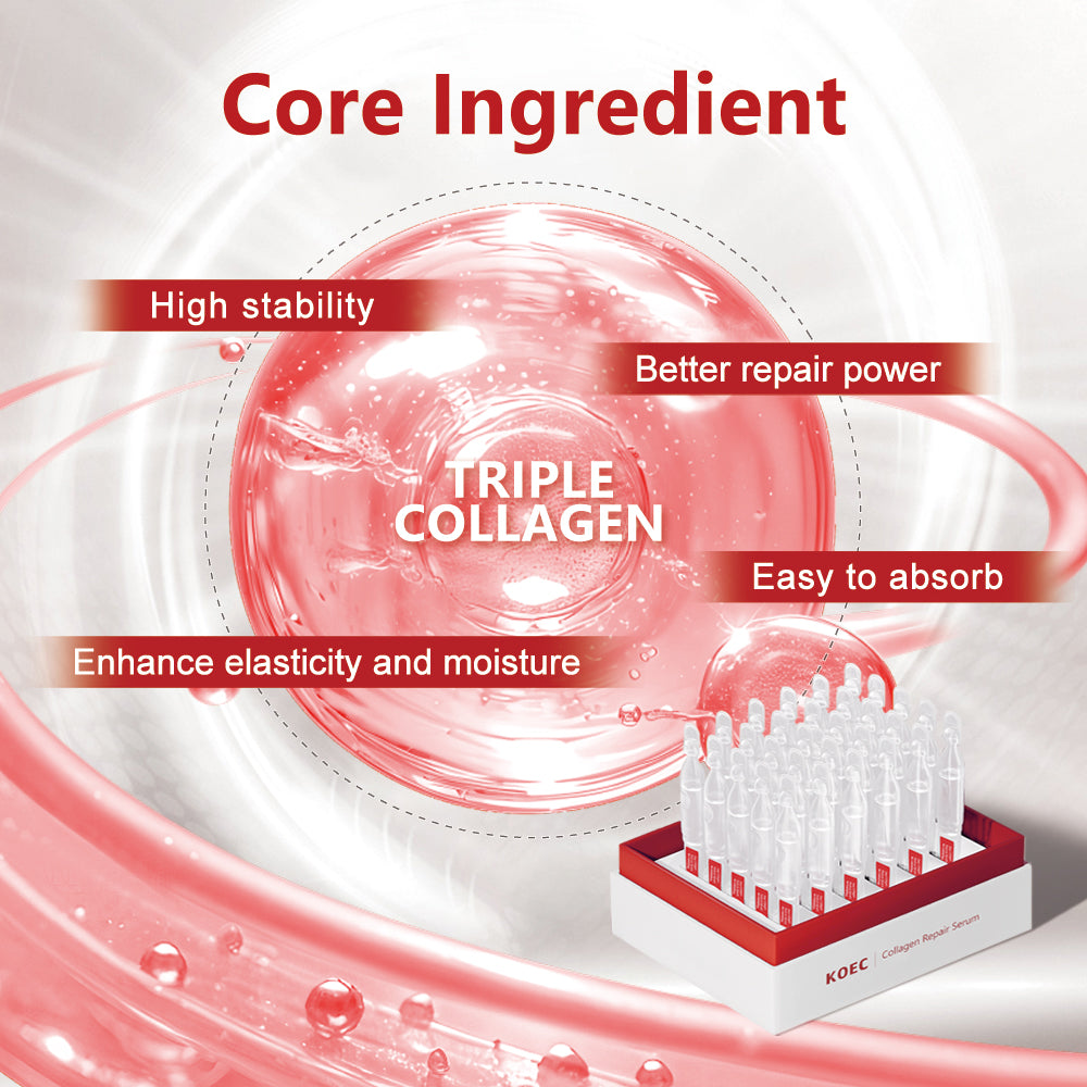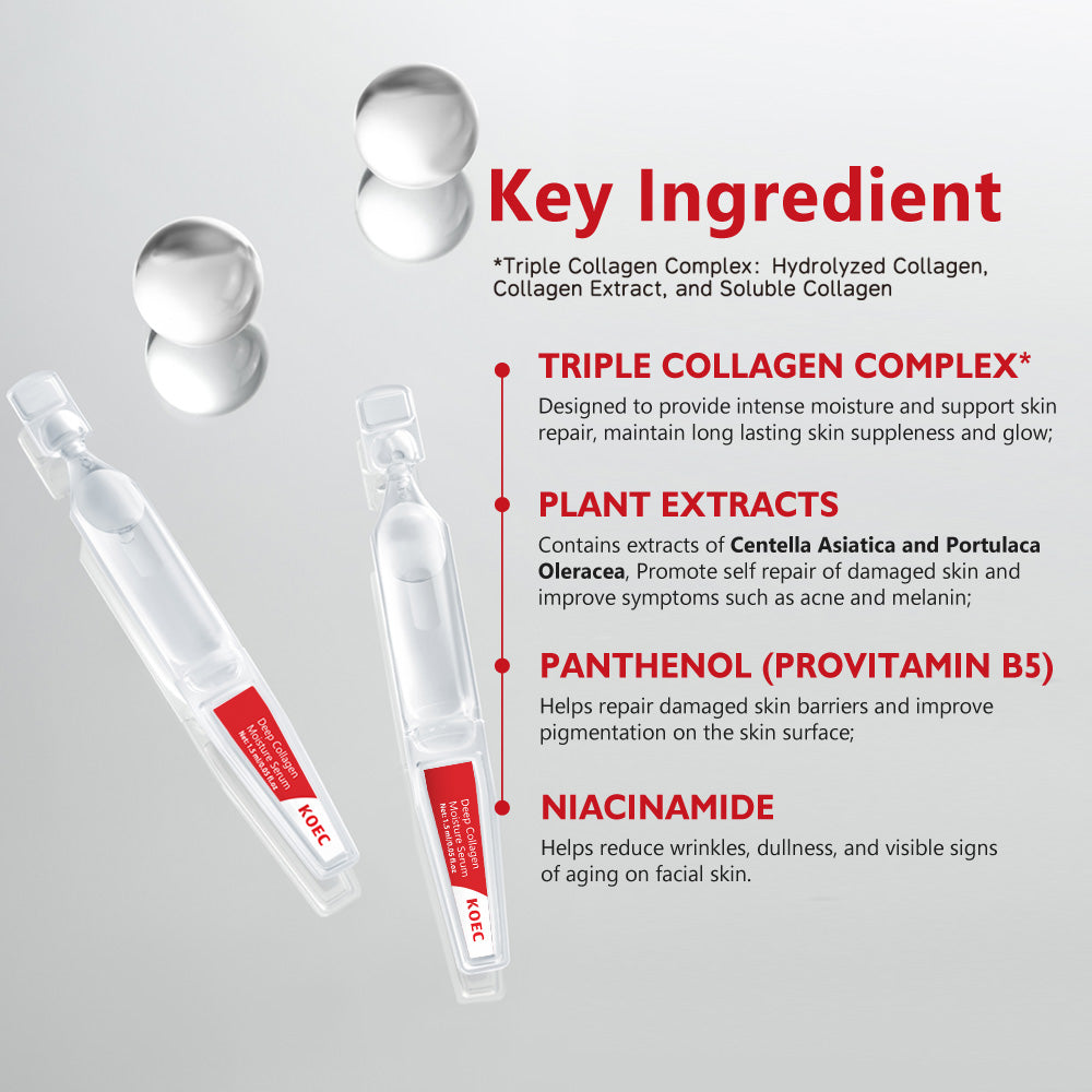【Triple Collagen Serum】 -helps to boost skin elasticity and nourish dull skin with the envious glass glow. The Triple Collagen Complex with Hydrolyzed collagen, atelo collagen, and soluble collagen penetrate faster and deeper into the skin barrier, providing even the deepest skin layer with the essential nutrients for plump and healthy-looking skin.