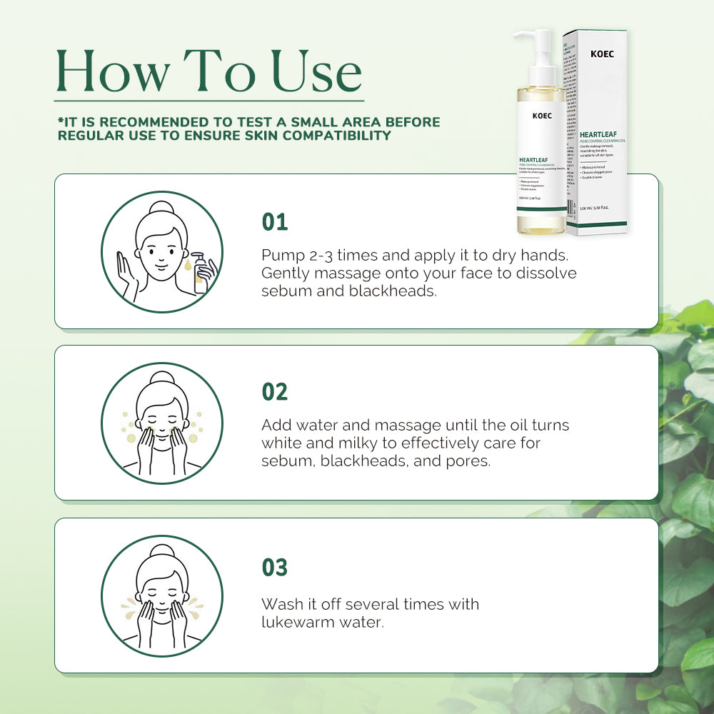 Our Heartleaf Pore Control Cleansing Oil is ideal for all skin types, especially sensitive and acne-prone skin. Perfect for anyone seeking a gentle yet effective double cleansing oil that removes impurities, prevents pore clogging, and delivers a radiant glass skin finish—whether you wear daily makeup or want to elevate your basic skincare routine.