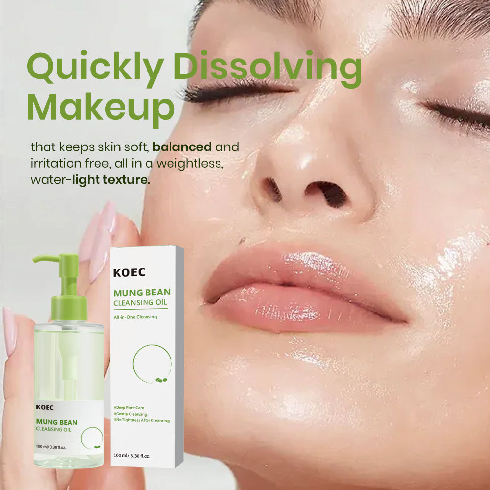 Effortless Makeup Removal, Deep Pore Purification - This luxurious cleansing oil harnesses the power of natural mung bean extract to gently dissolve makeup, sunscreen, and deep-seated impurities, leaving your skin fresh and breathing freely.